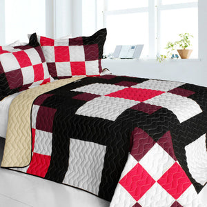 Hot Pink White Black Brown Patchwork Geometric Teen Bedding Full/Queen Quilt Set