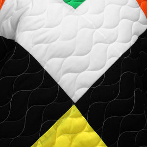 Modern Black White Green & Yellow Patchwork Teen Bedding Full/Queen Quilt Set Geometric Bedspread