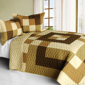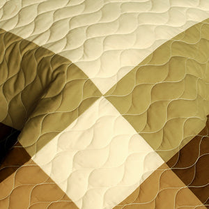 Liven up your bedroom with this bright brown and tan geometric, modern and colorful quilt set! Assembled in checkered, patchwork pattern and vermicelli quilted for elegance, long life and durability.