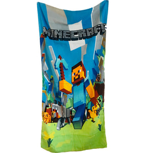 Minecraft Steve Kids Beach / Bath Towel 28" x 55" Blue / Green / Characters