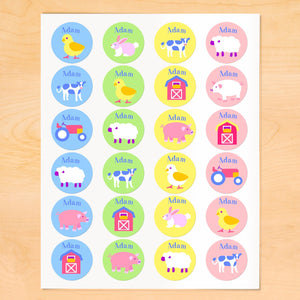 Baby Farm Animals Personalized Round Waterproof Labels 24 CT