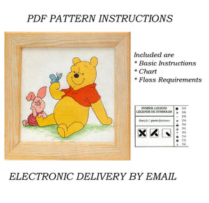 Disney Winnie The Pooh Bear Piglet & Butterfly 6" x 6" Counted Cross Stitch PDF Chart Pattern Instructions