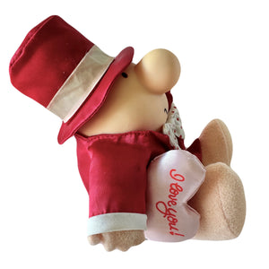 Vintage Valentine Red Tuxedo Ziggy Plush Rag 7" Stuffed Soft Doll with Pink Heart Pillow 'I Love You' 1987 Collectible Toy