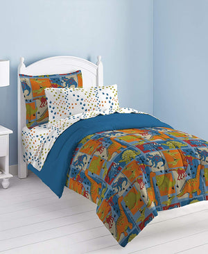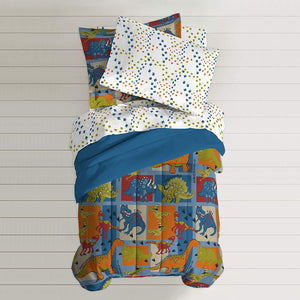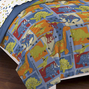 Blue Green Dinosaur Patchwork Boy Bedding Twin or Full Comforter Set Bed in a Bag