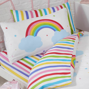 Rainbow Striped Toddler or Twin Kids Fitted Sheet & Pillowcase Set