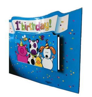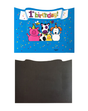Barnyard Animals 1st Birthday Party Celebration Magnetic Blue Fridge Baby Keepsake Photo Picture Frame 2-in-1