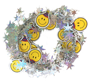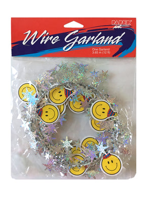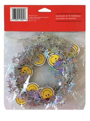 Vintage New Smiley Face Birthday Party Decorative Wired Garland 12 FT with Prismatic Stars