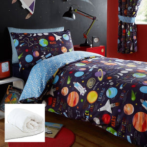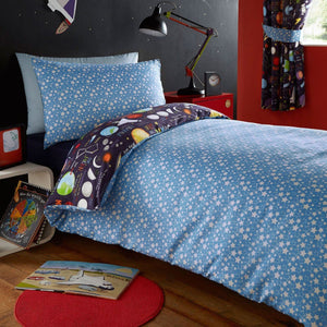 Blue Outer Space Planets Boys Bedding Twin Duvet Cover Set Rockets Stars Navy Reversible
