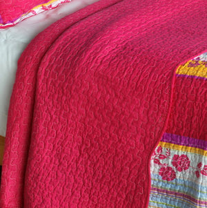 Red Hot Pink Floral Full/Queen Girl Bedding Blooming Garden Cotton Quilt Set