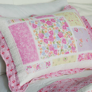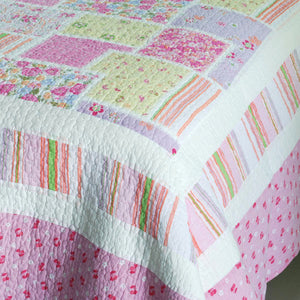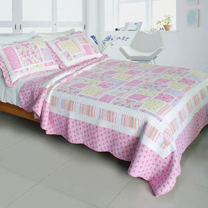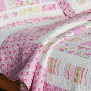 Floral Pink Rose Print Girl Bedding Full/Queen Quilt Set Spring Patchwork Cotton Bedspread