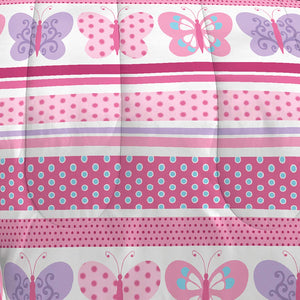 Pink Butterfly Dots Girls Bedding Todder, Twin or Full Comforter Set Bed in a Bag Ensemble