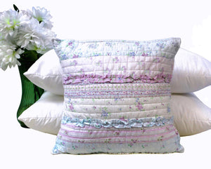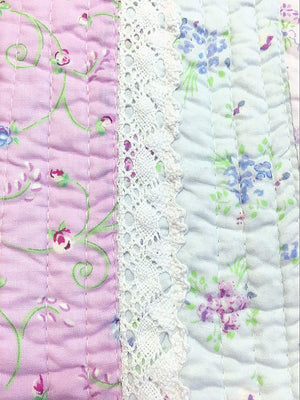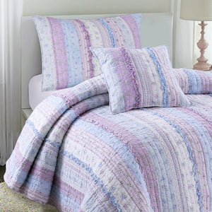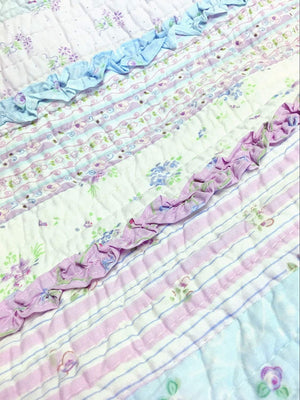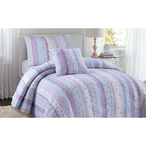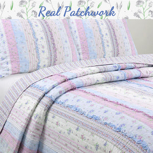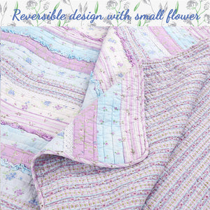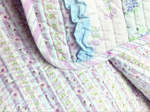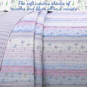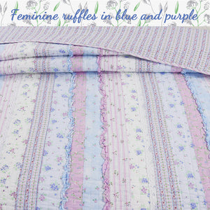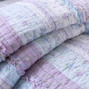 Feminine Romantic Shabby Chic Soft Lavender Ruffled Lace Girl Bedding Twin Full/Queen King Cotton Quilt Set Striped Floral Print