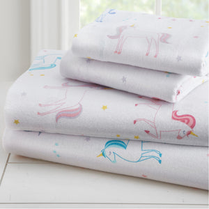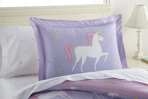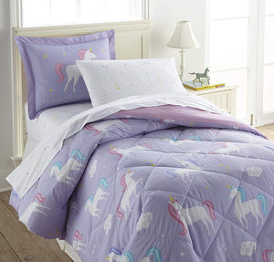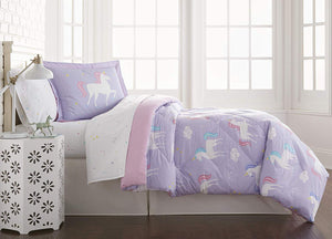 Purple Lavender White Unicorn Cotton Bed in a Bag Girl Bedding Toddler Twin Full Comforter & Sheet Set
