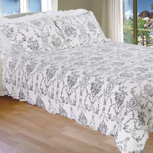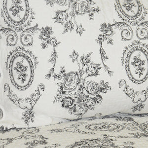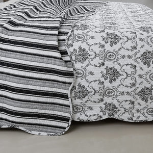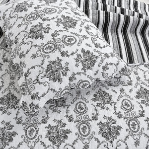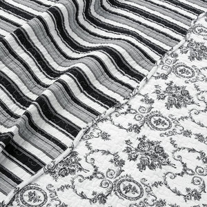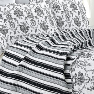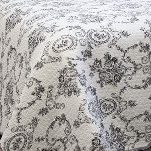 Luxury Cotton Black White Grey French Medallion Bedding Full/Queen King Elegant Romantic Victorian Quilt Set Floral Pattern Reversible Coverlet Bedspread