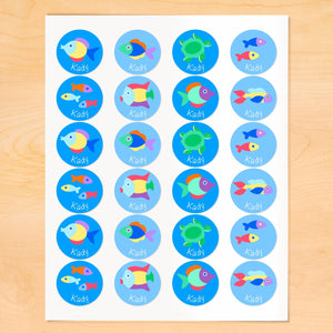 Ocean Fish & Turtle Personalized Round Waterproof Labels 24 CT