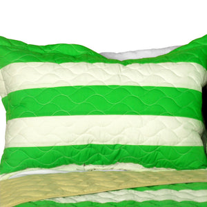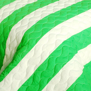 Green Soccer Theme Striped Bedding Girl or Boy Full/Queen Quilt Set Modern Bedspread