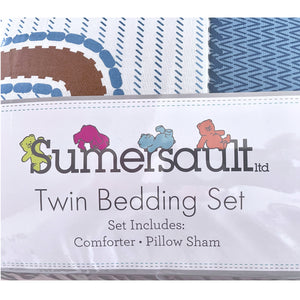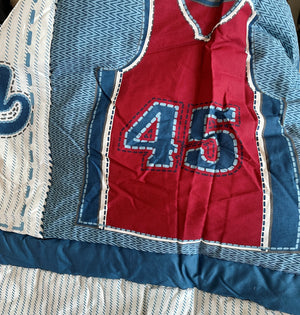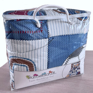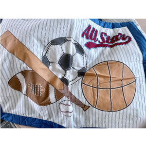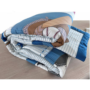 Sports Cotton Kids Bedding Twin Comforter Set Cotton Blue White Patchwork Basketball Soccer Football Baseball