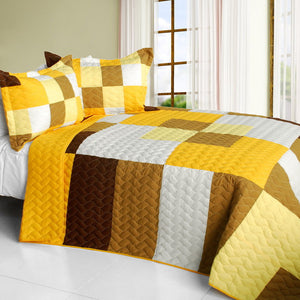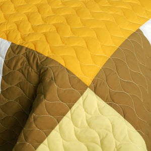 Brown Tan Yellow & White Teen Bedding Full/Queen Quilt Set Patchwork Geometric Bedspread