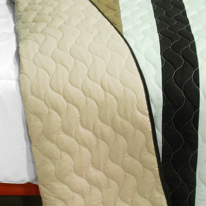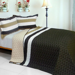Brown White Tan Striped Teen Bedding Full/Queen Quilt Set Elegant Modern Bedspread