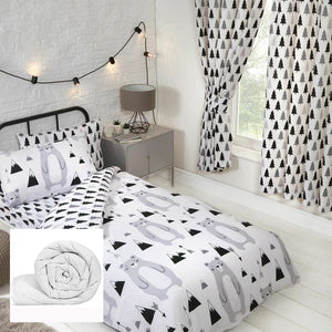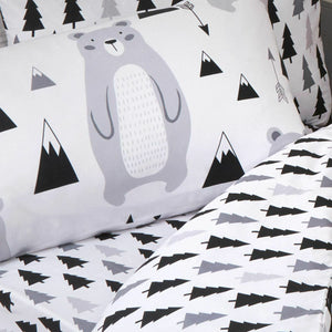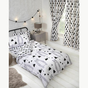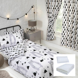 Grey Black White Forest Mountain Bear Kids Bedding Toddler Twin or Full Duvet Cover / Comforter Cover Set or Curtains