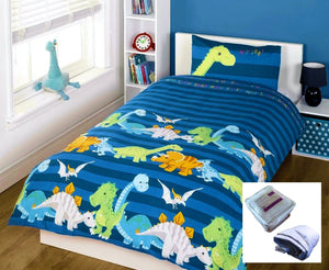 Kids Boys Rows of Dinosaurs Blue Bedding Toddler or Twin Duvet / Comforter Cover Set