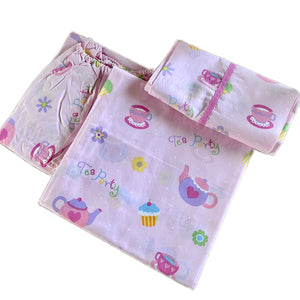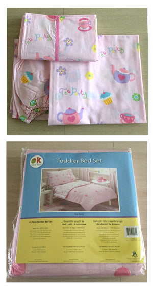 Pink Tea Party COTTON Toddler Girl Plush Appliques Bedding Comforter & Sheet Set Bed in a Bag Polka Dot & Stripe Olive Kids With Ribbons