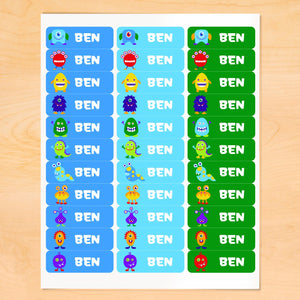 Alien Monsters Personalized 33 CT Rectangle Waterproof Labels