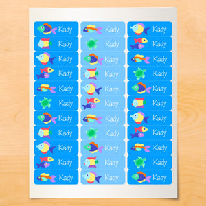Ocean Fish & Turtles Personalized 33 CT Rectangle Waterproof Labels