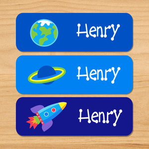Outer Space Rockets Planets Personalized 33 CT Rectangle Waterproof Labels