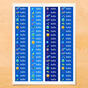 Outer Space Rockets Planets Personalized 80 CT Waterproof Mini Labels