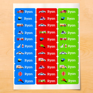Rescue Heroes Fire Trucks Police Personalized 33 CT Rectangle Waterproof Labels