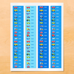 Trains Planes Trucks Personalized 80 CT Waterproof Mini Labels