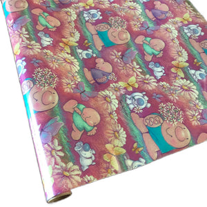 NEW Vintage 1995 Ziggy & Fuzz Rolled Gift Wrap Wrapping Paper Flowers & Butterflies Birthday and Any Occasion Rare