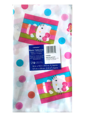 Hello Kitty Party Tablecloth Plastic Table Cover Rainbow Stripe Flowers Butterflies Polka Dot 54" x 102"