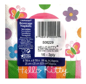 Hello Kitty Rainbow Stripe Flowers & Butterflies Small Beverage Party Napkins 16 CT