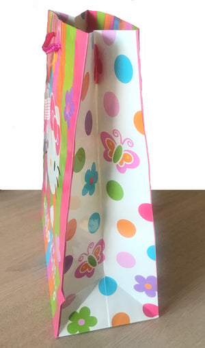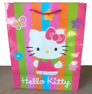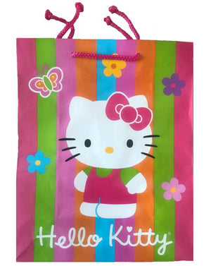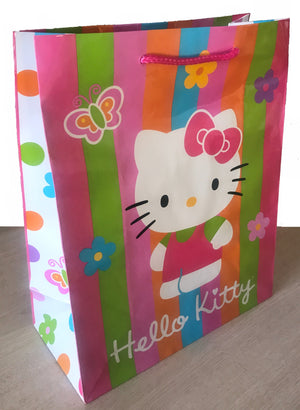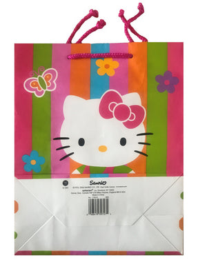 Hello Kitty Large Rainbow Stripe Gift Bag Glossy Paper Party Present Tote 13" x 10" x 5" - Flowers & Butterfly 10.5" x 13"