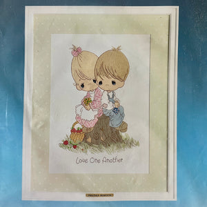 Create a timeless keepsake with this darling design showing a young girl and boy sitting on a tree stump with 'Love One Another' writing beneath them.  This is a great gift to yourself or a collector, a timeless keepsake to cherish.