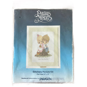 Vintage 1984 Precious Moments Love One Another Girl & Boy Paragon Needlecraft Stitchery Picture Kit 14" x 18"