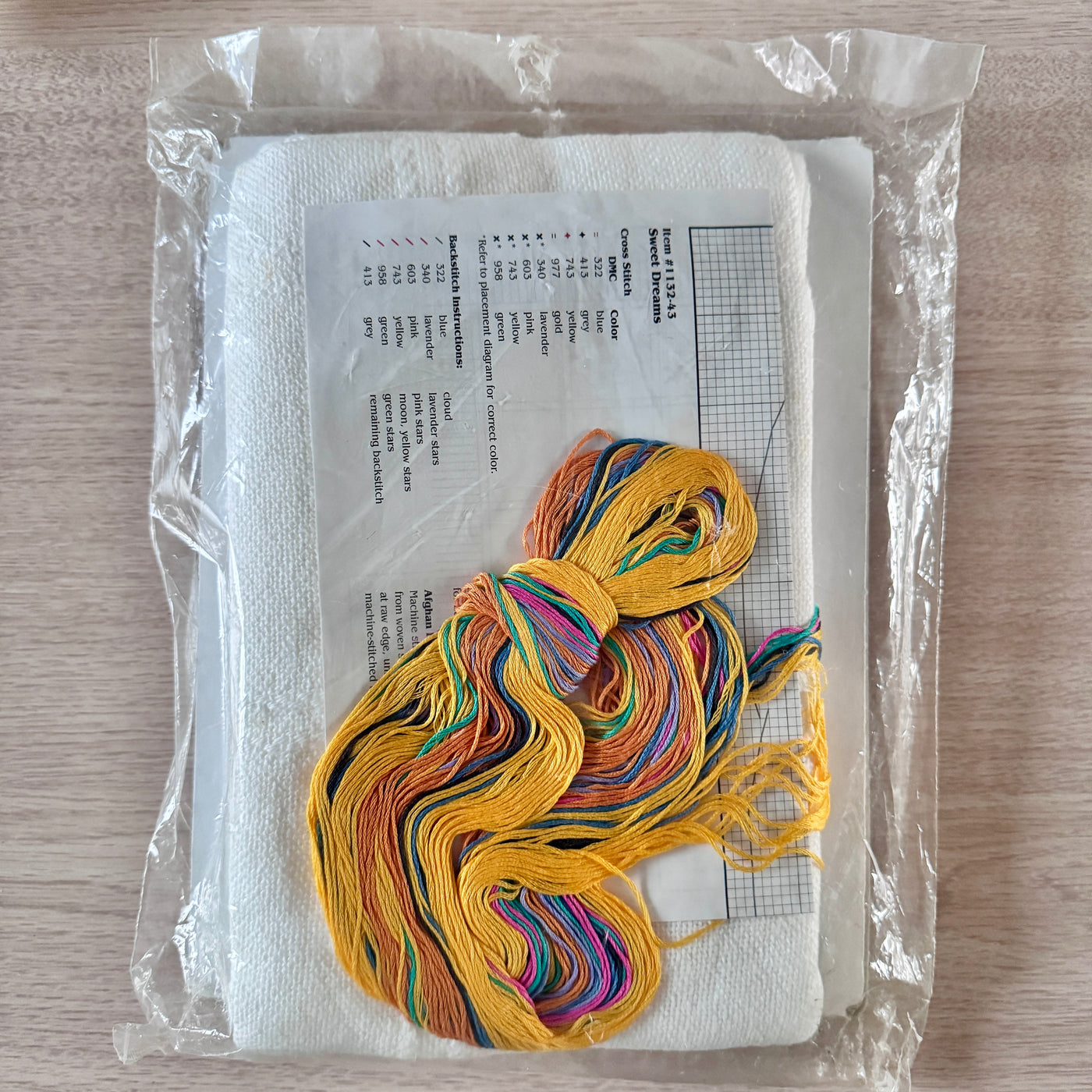 • Product Kit Contents: 16-count white cotton afghan (blanket), design chart, DMC cotton floss, needle, graph, instructions. One insert is blue, one is white/green, they both include the same contect.