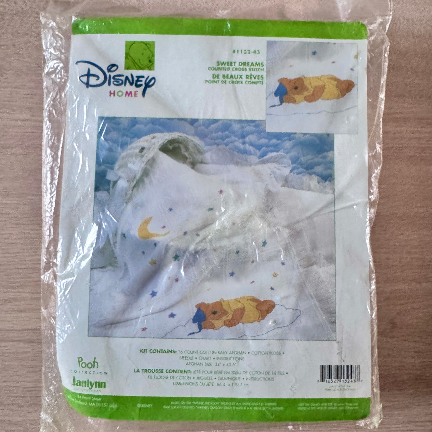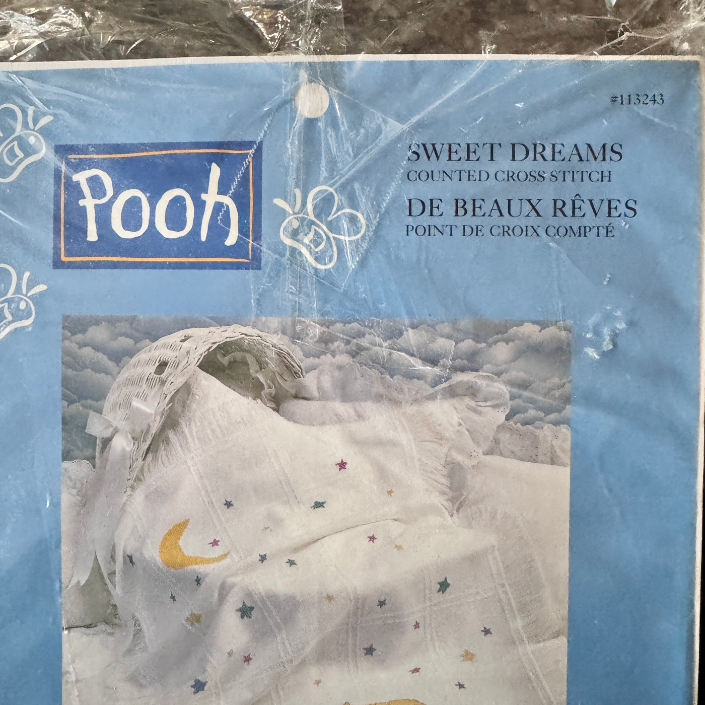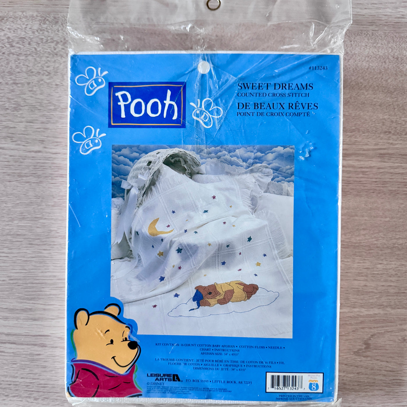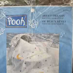 Vintage New Disney Winnie The Pooh Sweet Dreams Stars & Moon Counted Cross Stitch Sleeping Snoozing Keepsake Cotton Baby Afghan Blanket Kit 34" x 43 1/2"
