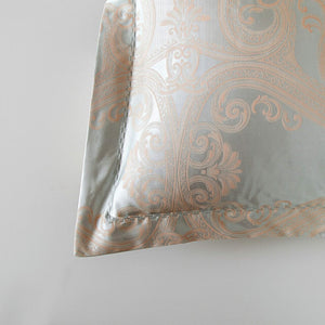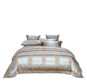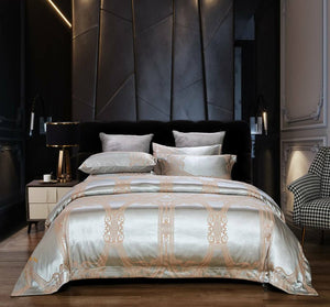 Luxury Cotton Gold Scroll & Silver Jacquard Bedding Queen Duvet Cover Set Designer Ensemble