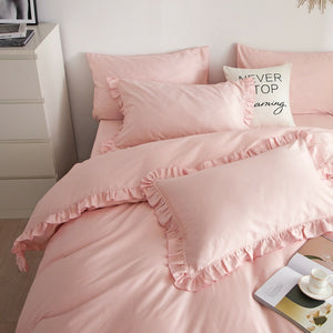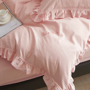 Luxury Cotton Pink Romantic Elegant Ruffle Edge Bedding King Duvet Cover Set Designer Ensemble
