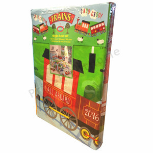 This bright and colorful choo choo train bedding features red and blue locomotives and assorted train cars with loads of coal, timber, and passenger cars going all around the countryside. The pillowcases and the duvet cover reverse to a matching small railroad sign print on a light blue background. Your little one will have loads of fun having this fun train bedding in their bedroom! The duvet cover has a hidden button closure on the bottom for easy removal for washing.