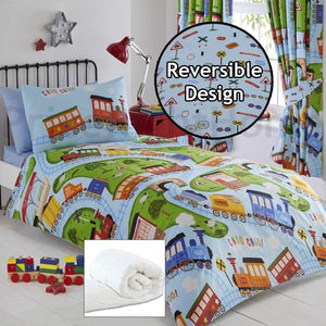 Choo Choo Trains Kids Bedding Twin Duvet / Comforter Cover Set Reversible