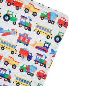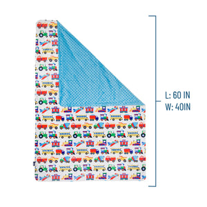 Transport Vehicles Trains Planes Trucks Baby Crib or Toddler Boy Blanket 40" x 60" Plush Velour Minky Throw