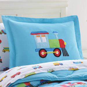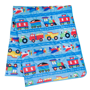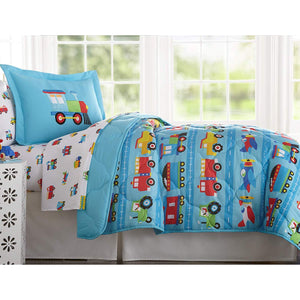 Blue Trains Planes Trucks Fire Trucks Microfiber Bed in a Bag Toddler Twin Full Bedding Comforter & Sheet Set