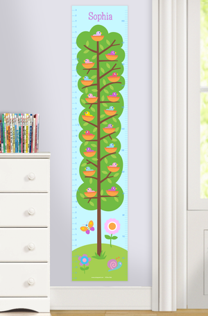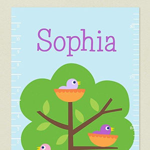 Cuadro de crecimiento de altura para niños personalizado con pájaros y nidos en lienzo o autoadhesivo