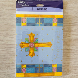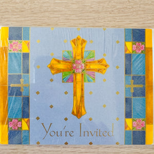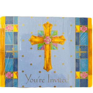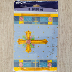 Tarjetas de invitación religiosas para bautizo, primera comunión, confirmación y cruz azul y dorada, 8 unidades