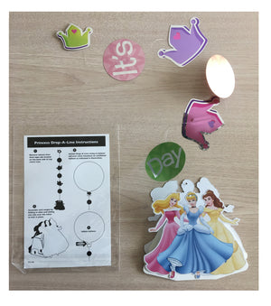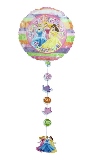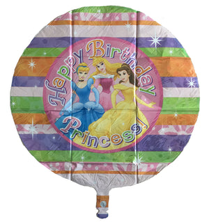 Globo de fiesta de 22" con diseño de princesas de Disney y texto "Feliz cumpleaños": Cenicienta, Aurora y Bella, con peso para globos