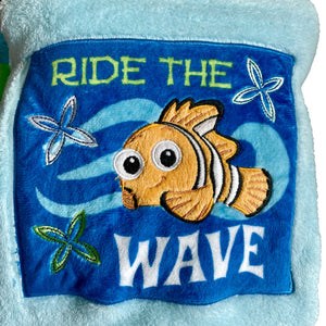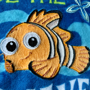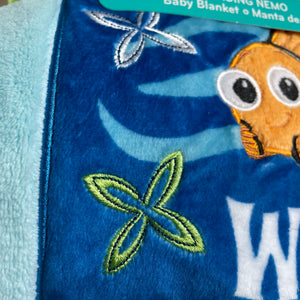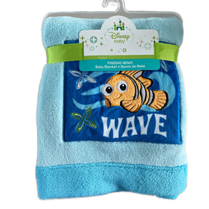 Manta de lujo vintage para cuna de bebé con diseño de peces de Disney Buscando a Nemo WAVE, de felpa azul coral bordada, de 30 x 40 pulgadas, súper suave